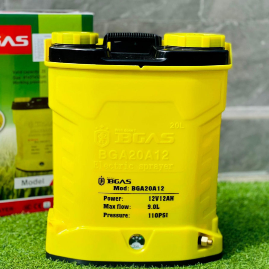 Máy phun thuốc trừ sâu bằng điện Bgas BGA20A12 cho tốc độ phun thuốc đều và nhanh, tiết kiệm thời gian làm việc và công sức.