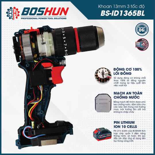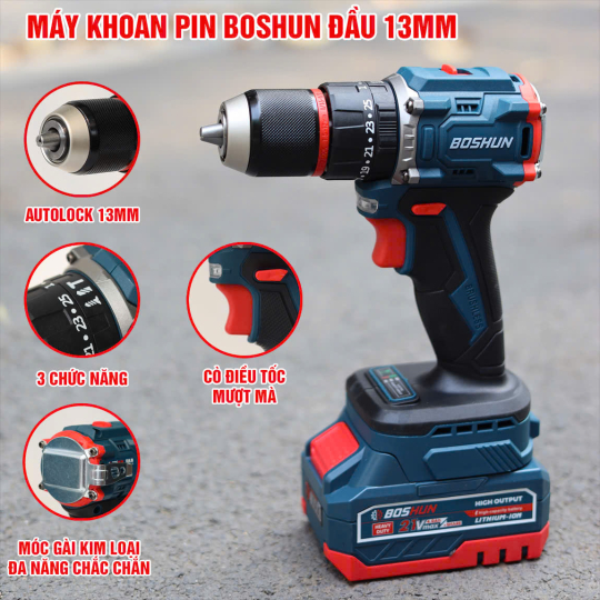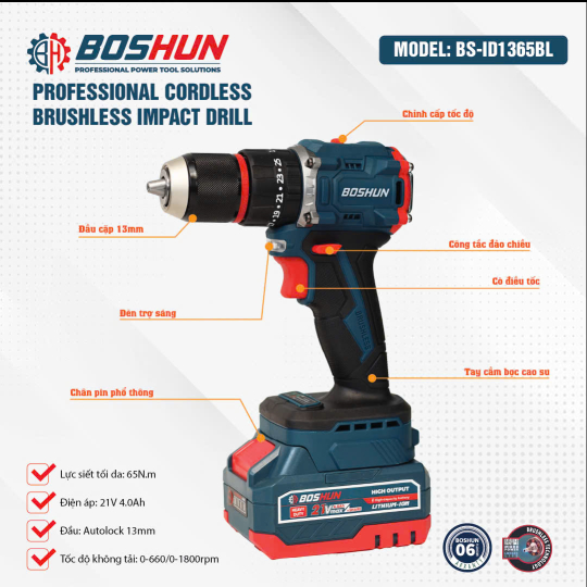 Máy Khoan Pin 3 Chức Năng Boshun BS-ID1365BL