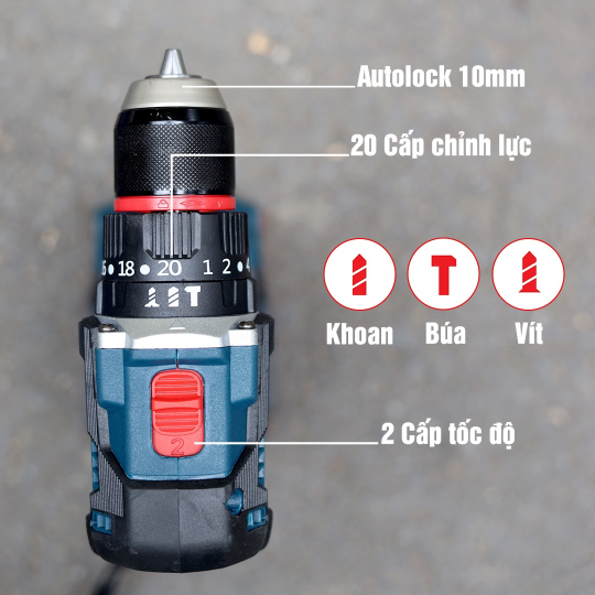 ✔️Máy tích hợp chức năng búa có khả năng khoan sâu, nhanh, mũi khoan chuẩn đẹp trên nhiều chất liệu cứng như: bê tông, tường  gạch, sắt, thép…