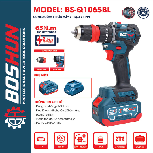 Máy khoan pin Boshun BS-Q1065BL Đầu 2 Trong 1