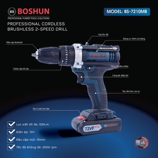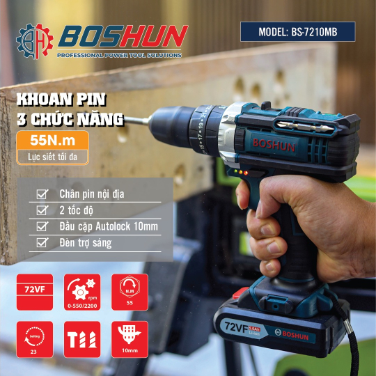 THÔNG SỐ KỸ THUẬT MÁY KHOAN PIN BOSHUN HM-7210MB: