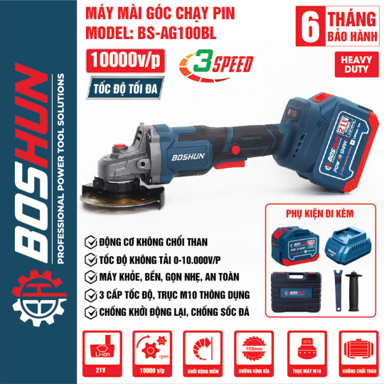 MÀI MƯỢT – CẮT ÊM – SIÊU BỀN VỚI MÁY MÀI PIN BOSHUN BS-AG100BL – ĐỘNG CƠ KHÔNG CHỔI THAN!