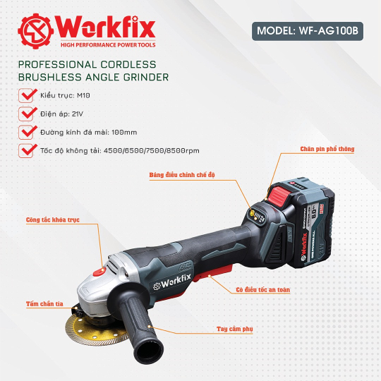 Máy Mài Pin Workfix WF-AG100B Pin 15Cell