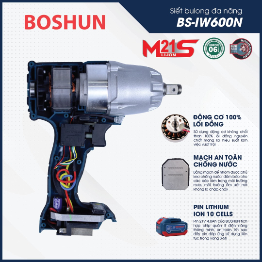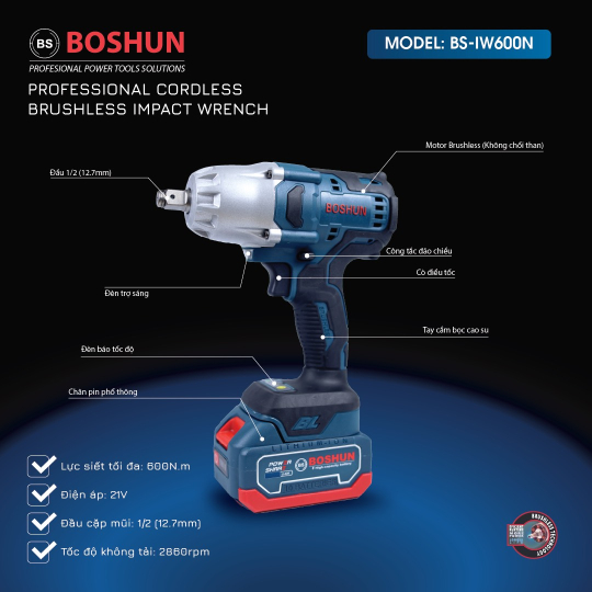 - Máy siết bulong Boshun 600N mở ốc ô tô dễ dàng, bảo hành chính hãng.
