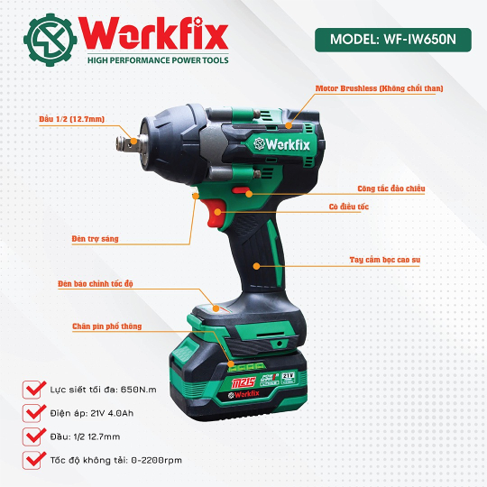 Máy Siết Bulong Workfix WS-IW650N Pin Plus